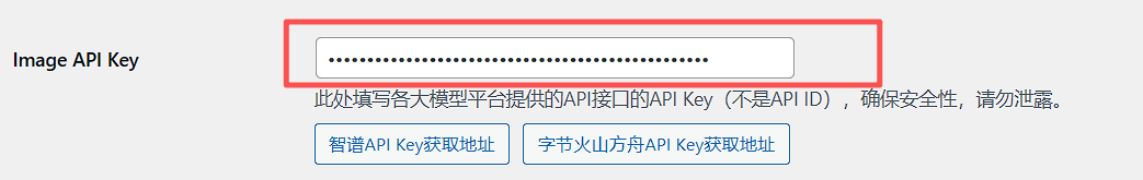 将我们复制到的API Key 填入AI Writer插件设置页面的 "Image API Key " 设置项中。