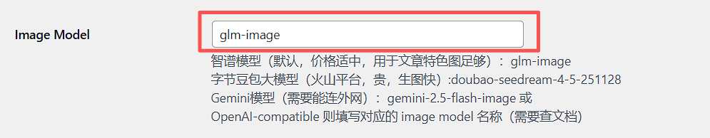 (5)将上一步复制的模型名称填入我们的AI Writer插件设置页面的“Image Model ”设置项中。